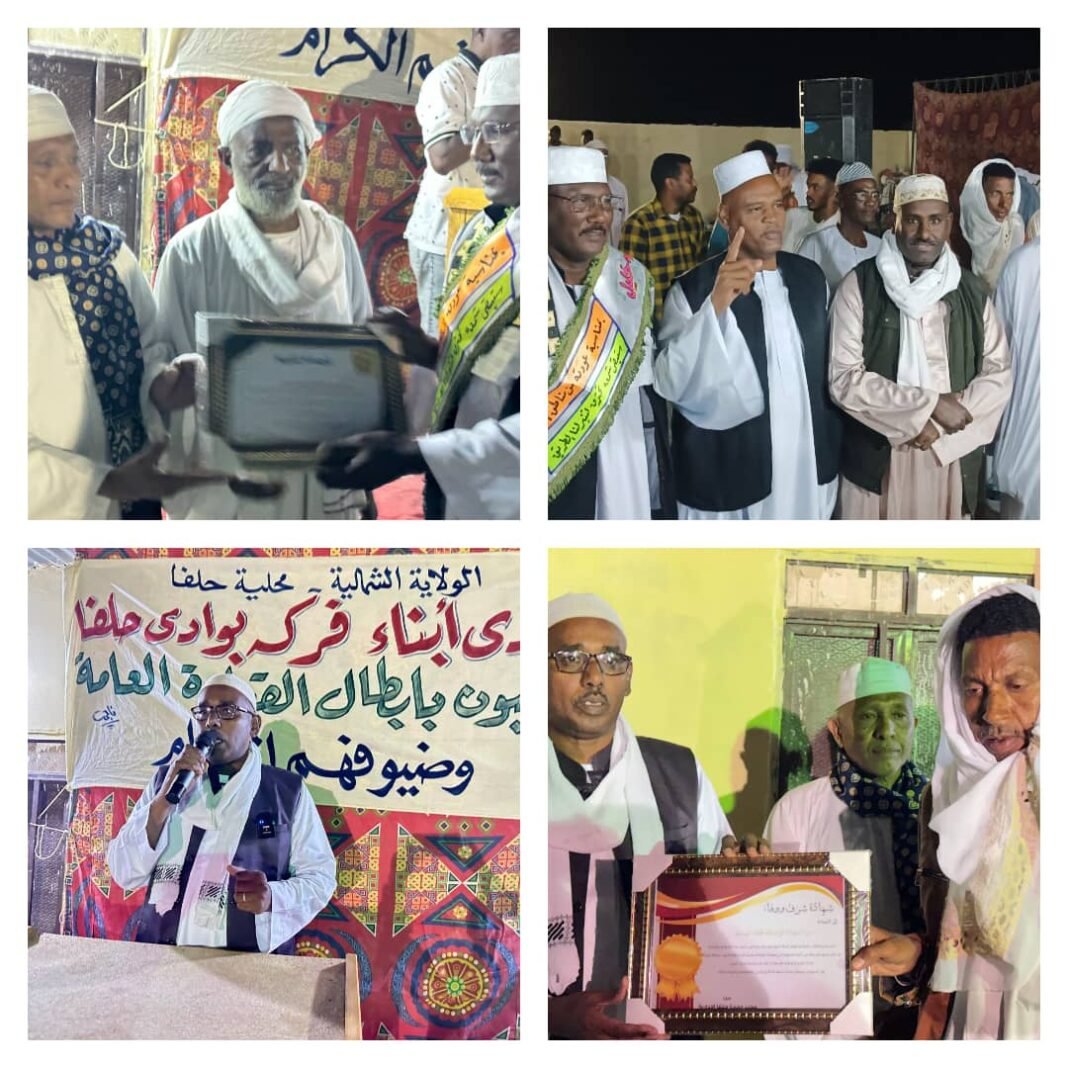 نظم ابناء نادي فركة الرياضي بمدينة حلفا حفل تكريم بالعائدين ابناء المنطقة من القيادة العامة وشهداء حرب الكرامة بتشريف المدير التنفيذي لمحلية حلفا الاستاذ ابو عبيدة ميرغني برهان وحضور مدير وحدة حلفا الادارية و قيادة اللواء 76 مشاة بوادي حلفا وشرطة المحلية والمقاومة الشعبية وعدد من القيادات الشعبية والحكومية .