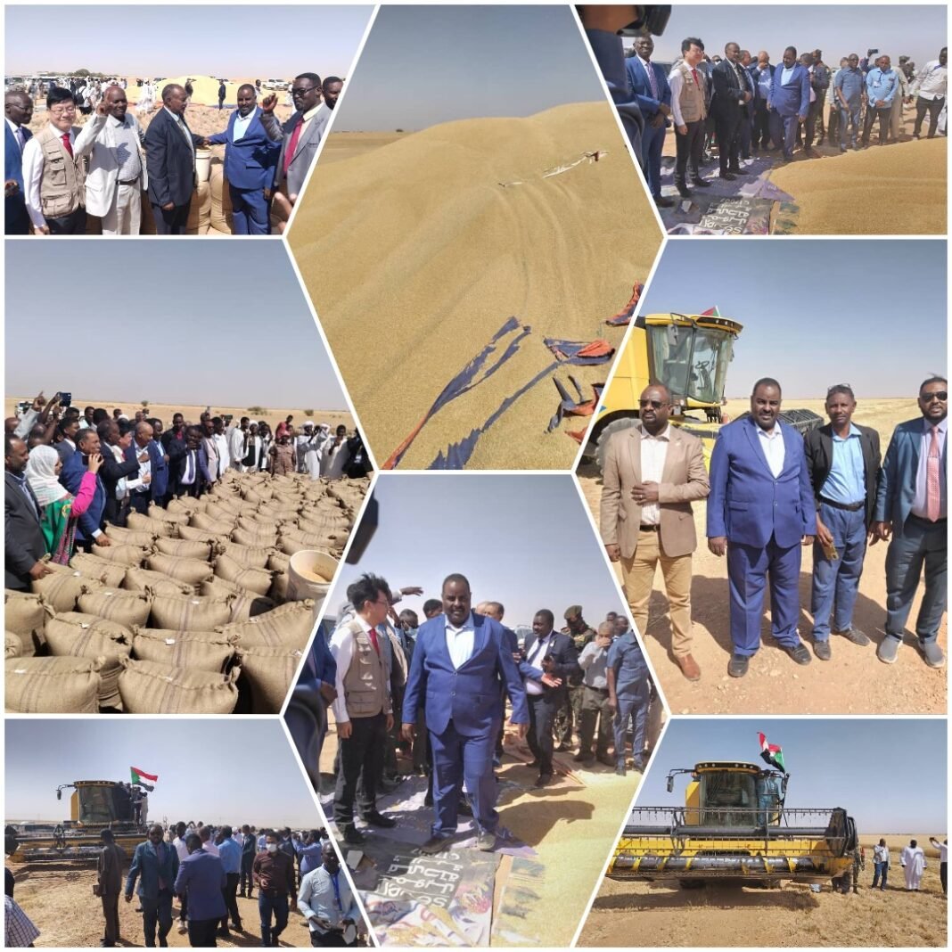 وعدد من الوزراء بالولاية الشمالية حصاد محصول القمح بمشروع رجل الاعمال معاوية البرير للانتاج الحيواني والزراعي بالولاية الشمالية