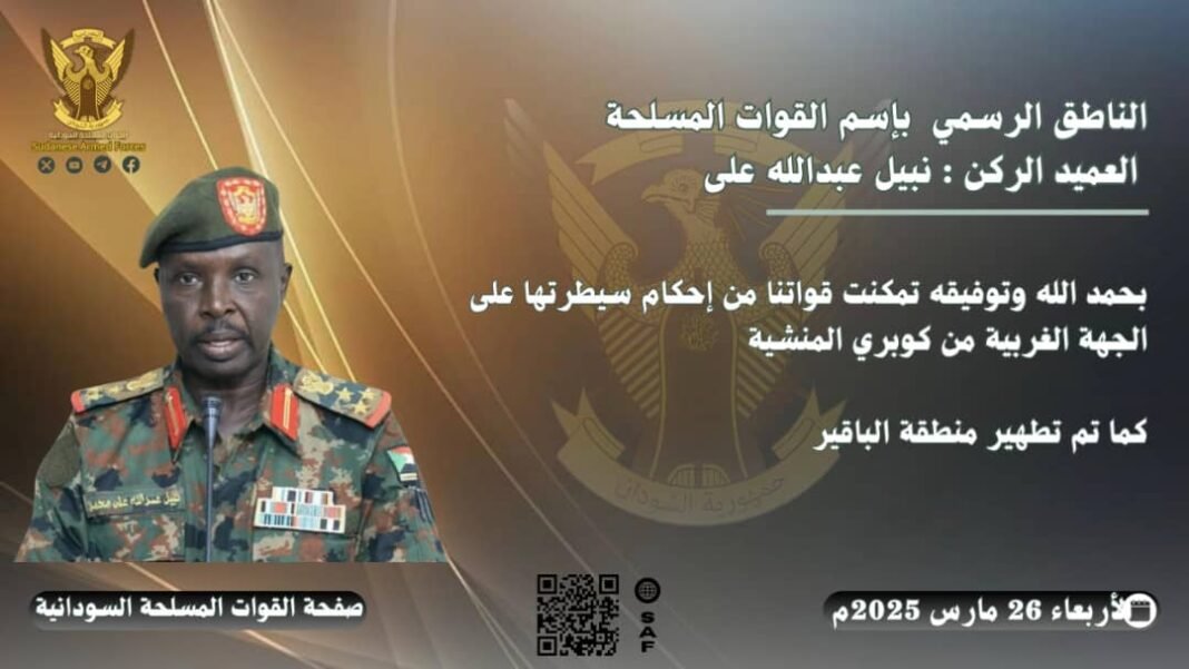 اكد الناطق الرسمي للقوات المسلحة العميد الركن نبيل عبدالله ان القوات المسلحة تمكنت