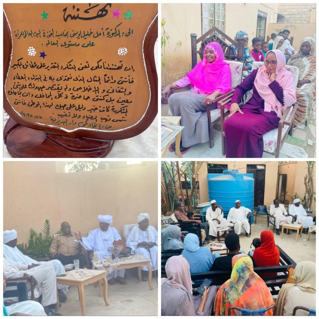 قام وفد من اتحاد دار عموم البديرية بولاية شمال كردفان برئاسة الأستاذ مولانا امين علي أحمد ودابوكر رئيس المجلس الاستشاري للاتحاد يرافقة الأستاذ. جعفر حموده رئيس اتحاد عموم البديرية المكلف و محمد الامين الأنصاري رئيس لجنة المصالحات بالاتحاد وإبراهيم القدال الأمين العام للاتحاد وسالم عبدالله محمد رئيس لجنة التنسيق والعلاقات العامة بالاتحاد وصالح أحمد الجلخ رئيس لجنة الاراضي بالاتحاد قاموا بتكريم د.امل خليل يوسف بمناسبة نيلها ضمن خمسة نساء جائزة الأمم المتحدة للنساء بمنزلهم العامر بمدينة الأبيض بحضور د.محمد الحافظ خليل ود. امال خليل والمهندس محمد الفاتح خليل وإيمان خليل والشيخه حواء المربية القديرة