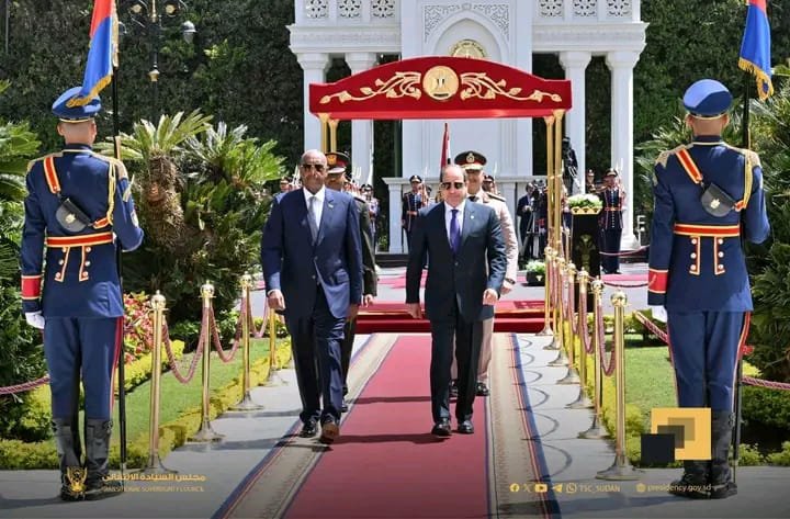وكان الرئيسان قد عقدا جلسة مباحثات مشتركة إستعرضا فيها مسيرة العلاقات الثنائية وسبل دعم وتعزيز آفاق التعاون المشترك في مختلف المجالات.وتطرقت المباحثات لإمكانية مساهمة مصر في جهود إعادة إعمار وتأهيل ما دمرته الحرب بالسودان.