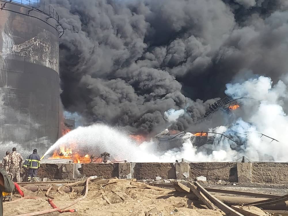 وزارة الطاقة والنفط توضح مسلسل العمليات الإرهابية التي توالت على العاصمة الادارية بورتسودان منذ أول أمس حيث تم صباح اليوم إستهداف مقر المستودعات الخاصة بشركات توزيع الوقود بورتسودان وذلك قبل اطفاء نيران هجوم الأمس على المستودعات الاستراتيجية الخاصة بالوزارة وتؤكد الوزارة تعرض مستودع شركتي أويل انرجي و النيل للبترول المحدودة لهجوم بمقذوفات أدت الي إشتعال الحريق في المنطقة المكتظة بخزانات الوقود مما يؤكد تعمد العدو لاحداث دمار شامل للمنطقة ، وتؤكد الوزارة ان عمليات الإطفاء تجري من قبل شرطة الدفاع المدني لاحتواء الحريق للحد من إنتشاره لتجنب حدوث كارثة بالمنطقة. التي تعد وسط المدينة.