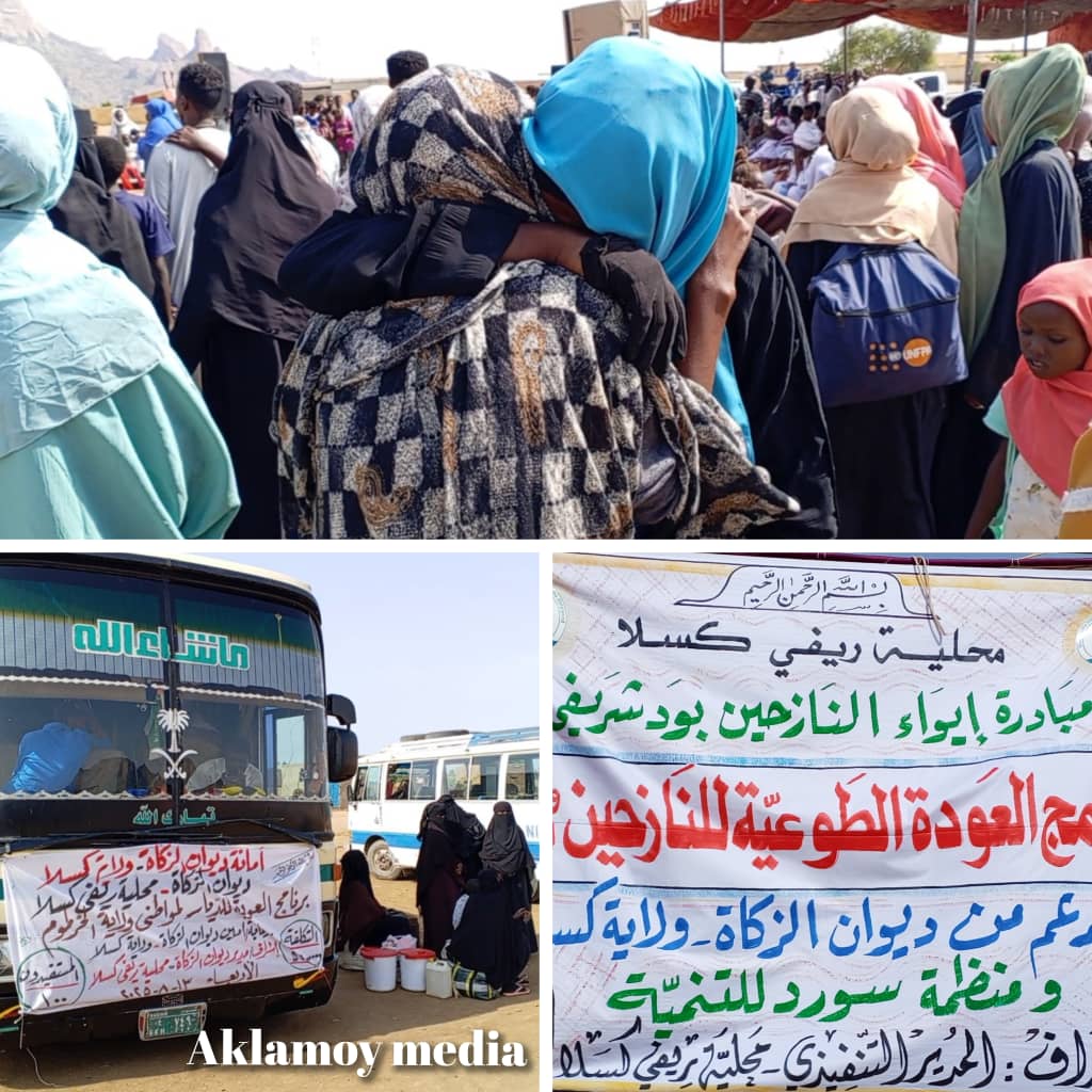نظمت مبادرة إيواء النازحين بمدينة ود شريفي محلية ريفي كسلا برنامج العودة الطوعية للنازحين من ولاية الخرطوم ، بدعم من ديوان الزكاة ومنظمة سورد وبإشراف المدير التنفيذي لمحلية ريفي كسلا ، وسط حضور كبير ومشاعر إنسانية مؤثرة .