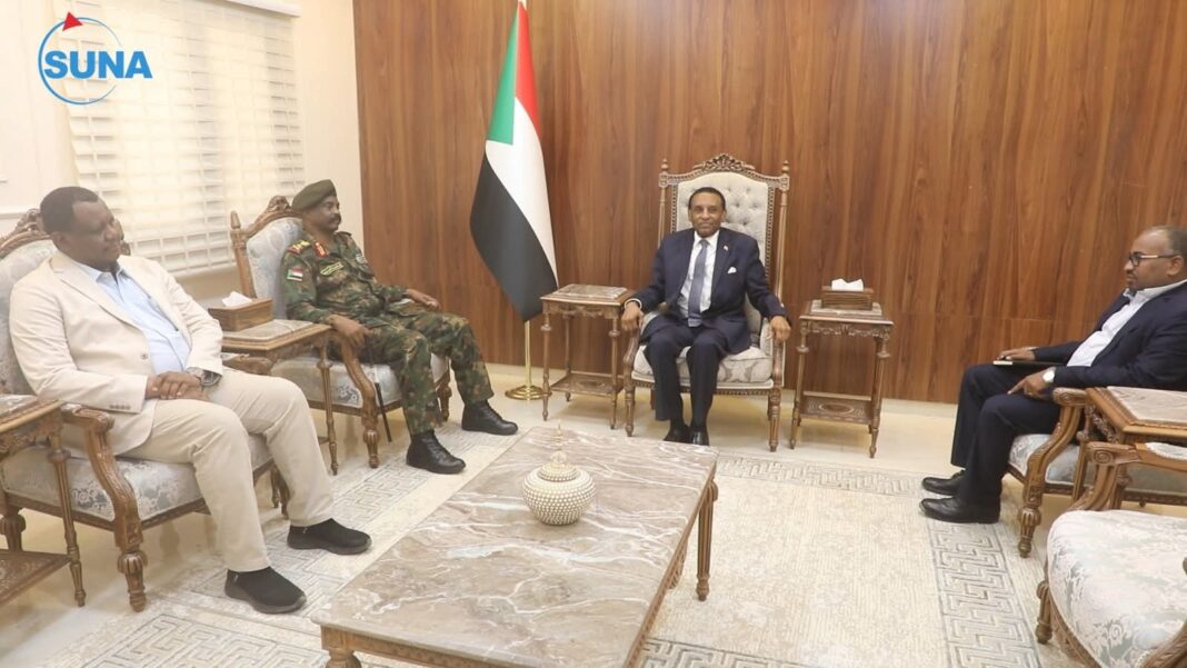 التقي الدكتور كامل ادريس رئيس الوزراء الانتقالي اليوم بمكتبه والي الولاية الشمالية الفريق الركن عبد الرحمن عبد الحميد.