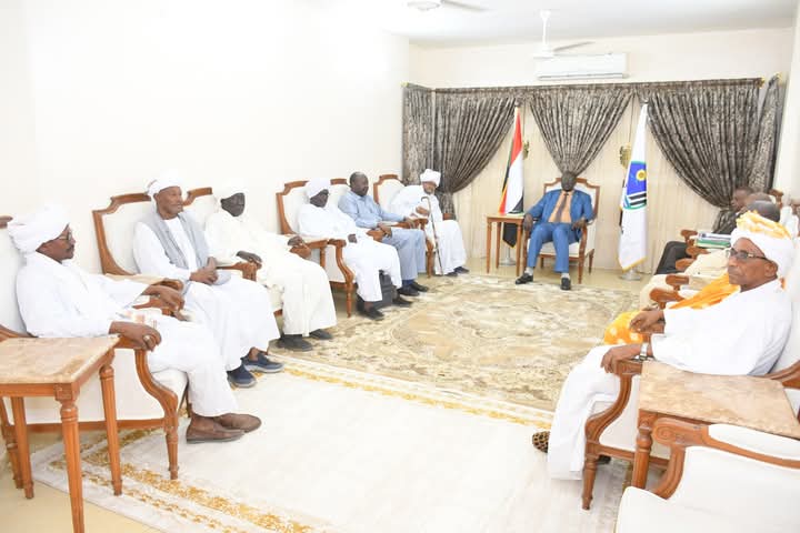 إستقبل الفريق أحمد العمدة بادي حاكم إقليم النيل الأزرق وفد قيادات مجلس السلام بالإقليم برئاسة المك الفاتح يوسف حسن عدلان ناظر عموم قبائل النيل الازرق رئيس المجلس .