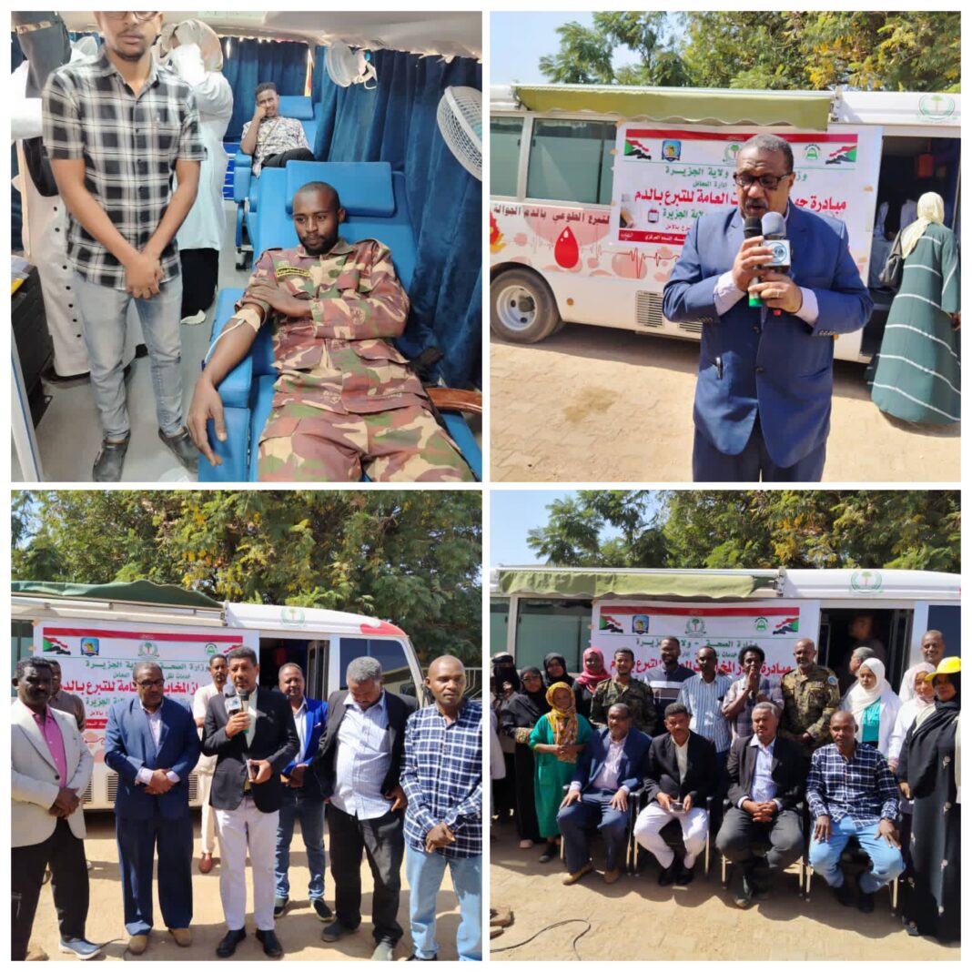 دشّن جهاز المخابرات العامة بولاية الجزيرة، اليوم، ببنك الدم المركزي بمدينة ود مدني، مبادرة التبرع بالدم بالتعاون مع وزارة الصحة بالولاية، تحت شعار (دمك حياة لغيرك… تبرع بالدم، تبرع بالأمل)، وذلك برعاية كريمة من والي ولاية الجزيرة، في خطوةٍ تعكس تلاحم المؤسسات الرسمية مع القيم الإنسانية، وتمتد فعالياتها لعدة أيام إسنادًا لبنوك الدم وتلبيةً لاحتياجات المرضى.