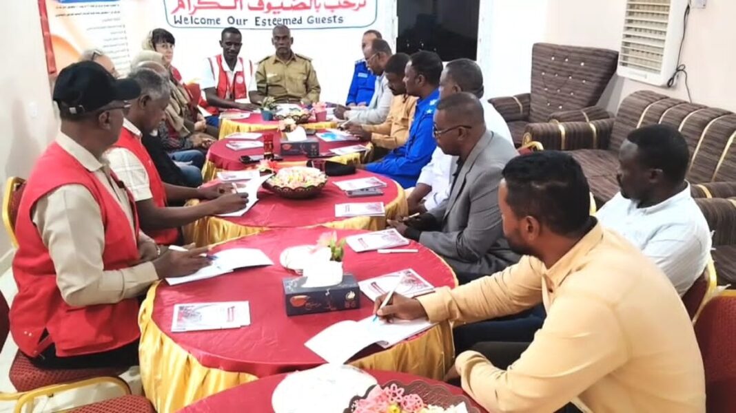 بحضور لجنة أمن المحلية وإدارة الطوارئ بالصليب الأحمر الدينماركي ومنسق برنامج النقد والقسائم بالأمانة العامة الأستاذة نجاة و مدير الطوارئ بفرع الولاية الشمالية الأستاذ هشام عنتر ومدير التخطيط والمتابعة والتقييم بالفرع الأستاذ حمد حسين.