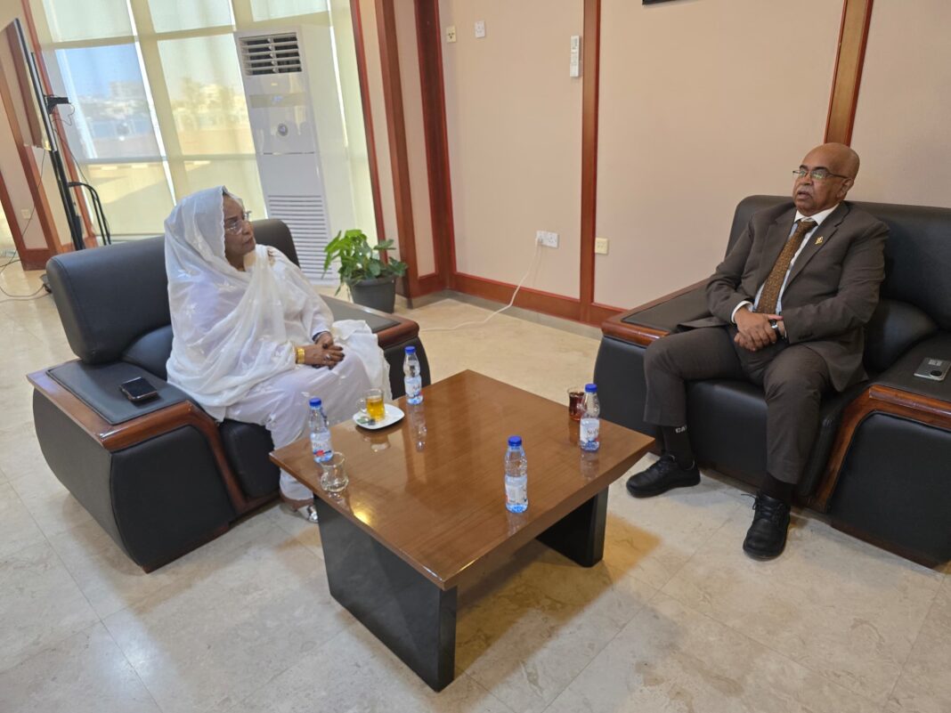 التقي وزير الطاقة المهندس مستشار المعتصم ابراهيم احمد بمحافظ البنك المركزي الاستاذة/ أمنة التوم بمكتبه ،بحضور المهندس الصادق جابر عضو لجنة تسير مهام مكتب الوكيل.