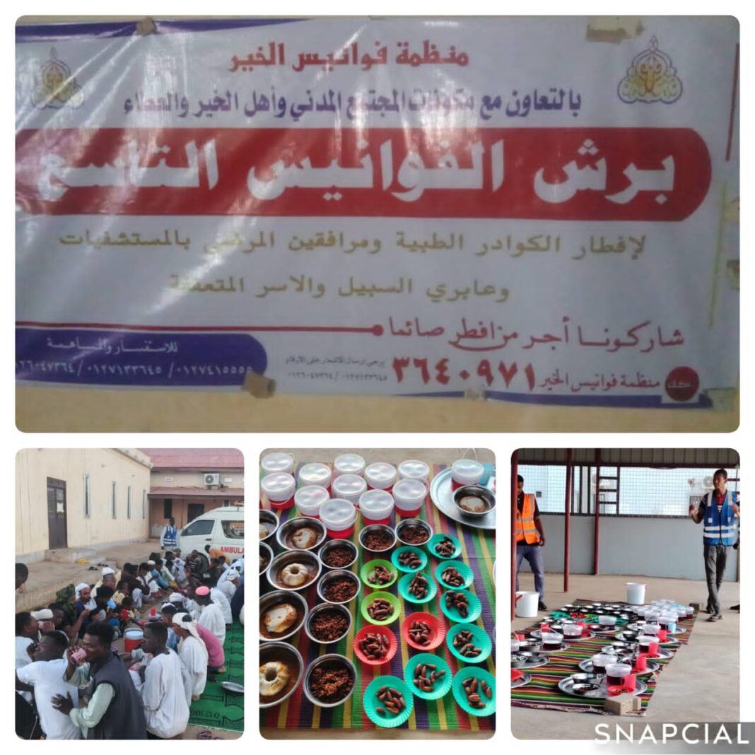تحت شعار من غيرنا لإهلنا تواصلت فعاليات برنامج الإفطار الرمضاني الذي تنفذه منظمة فوانيس الخير بمستشفى الدبة المركزي ، حيث أقيم إفطار اليوم الخامس ، مستهدفًا (٢٠٠) مستفيد من المرضى ومرافقيهم، إلى جانب 50 من الكادر الطبي والعاملين.