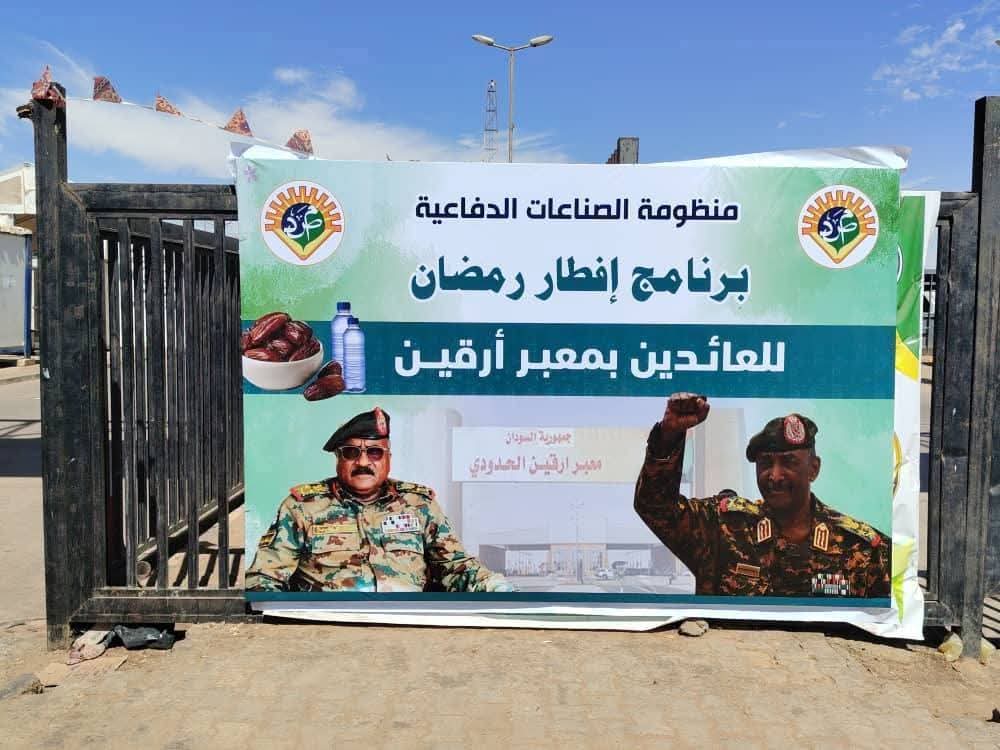 بتوجيه من رئيس مجلس السيادة القائد العام للقوات المسلحة وبرعاية مدير عام منظومة الصناعات الدفاعية ، تم تنفيذ برنامج الخيمة الرمضانية لإفطار العائدين بمعبر #أرقين البري ، حيث يستهدف البرنامج أكثر من 500 شخص يومياً من العائدين إلى أرض الوطن، إضافة إلى العاملين بالوحدات والإدارات الحكومية العاملة بالمعبر .